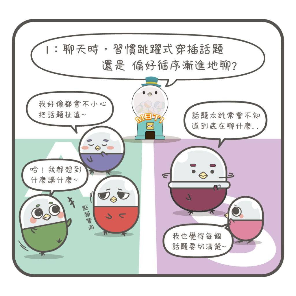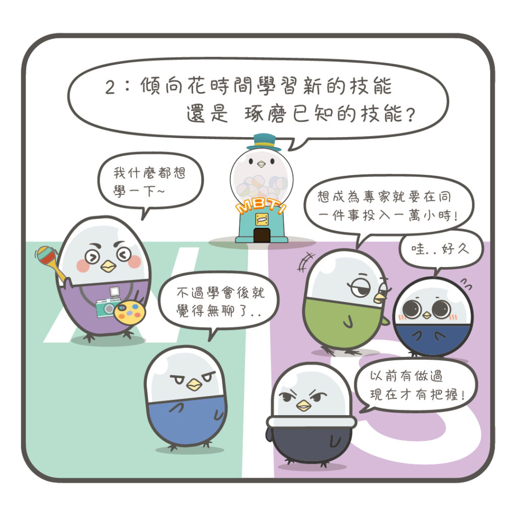 ps. 以上內容為漫畫趣味性的主題創作,舉例與說明可能依情境和時空因人而異,並非唯一答案。更嚴謹的人格測試記得去參與官方正式的檢測喔!