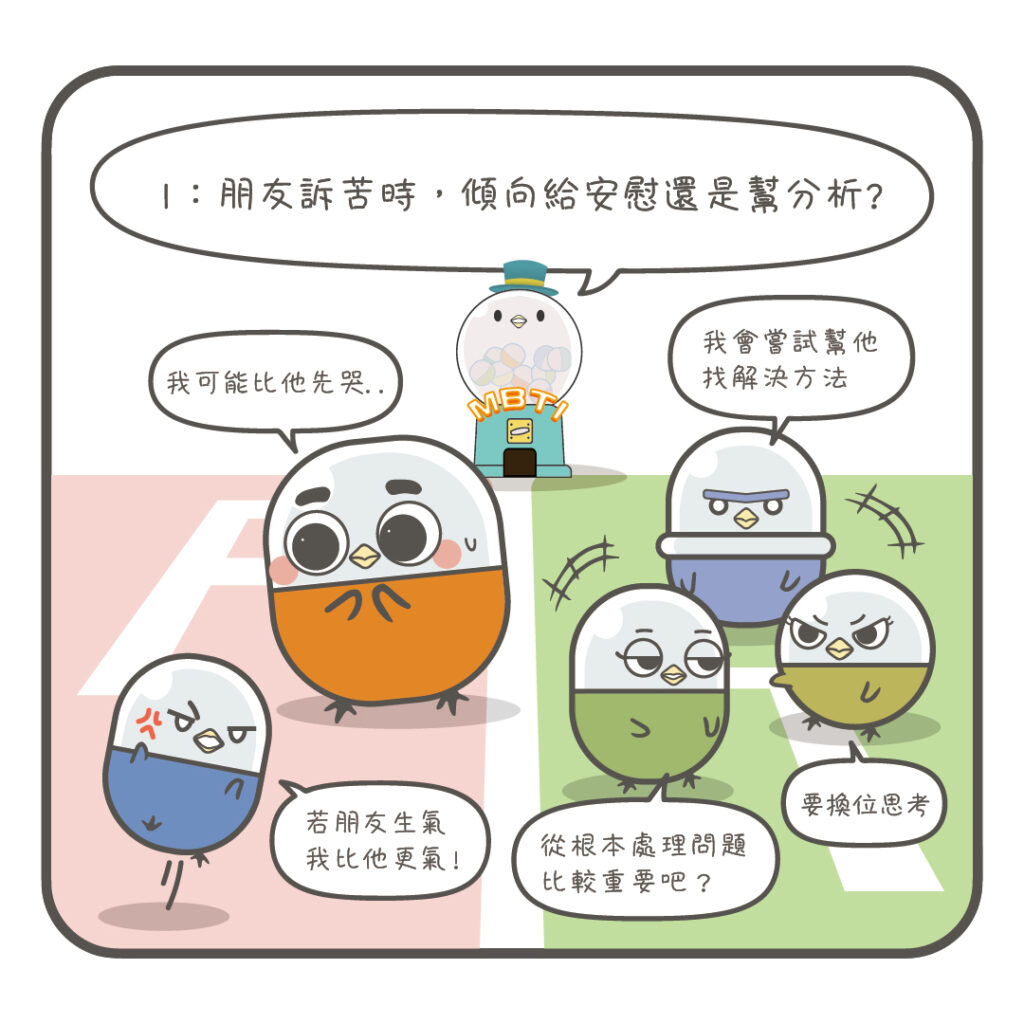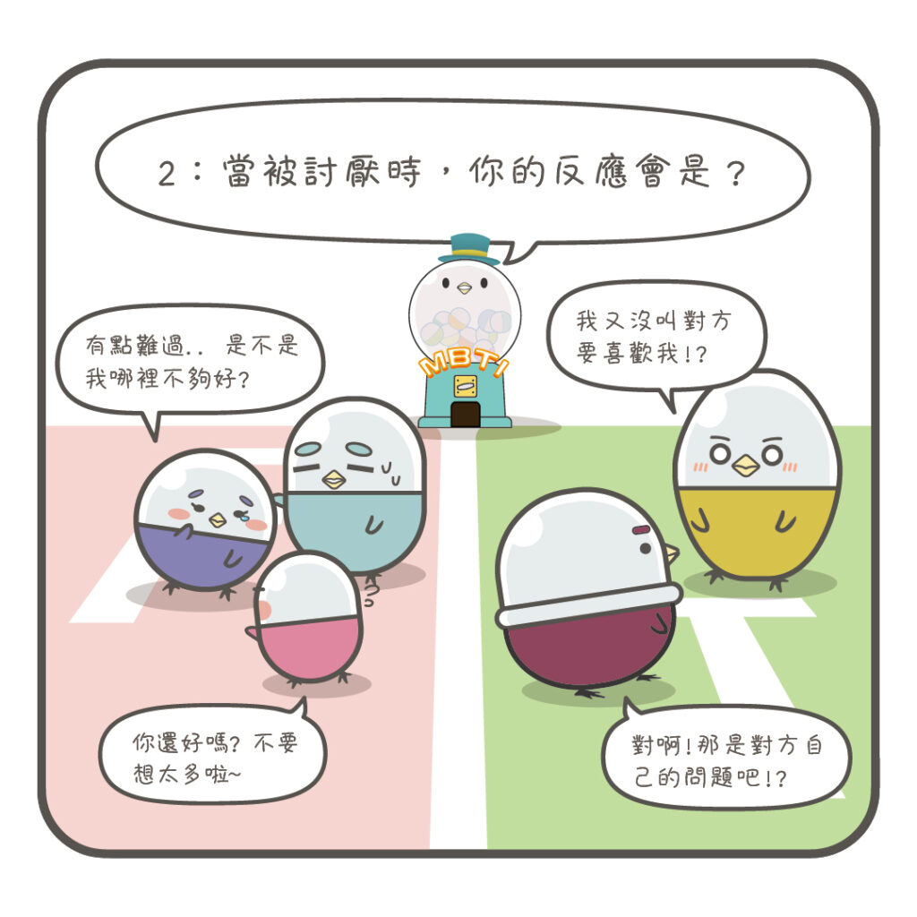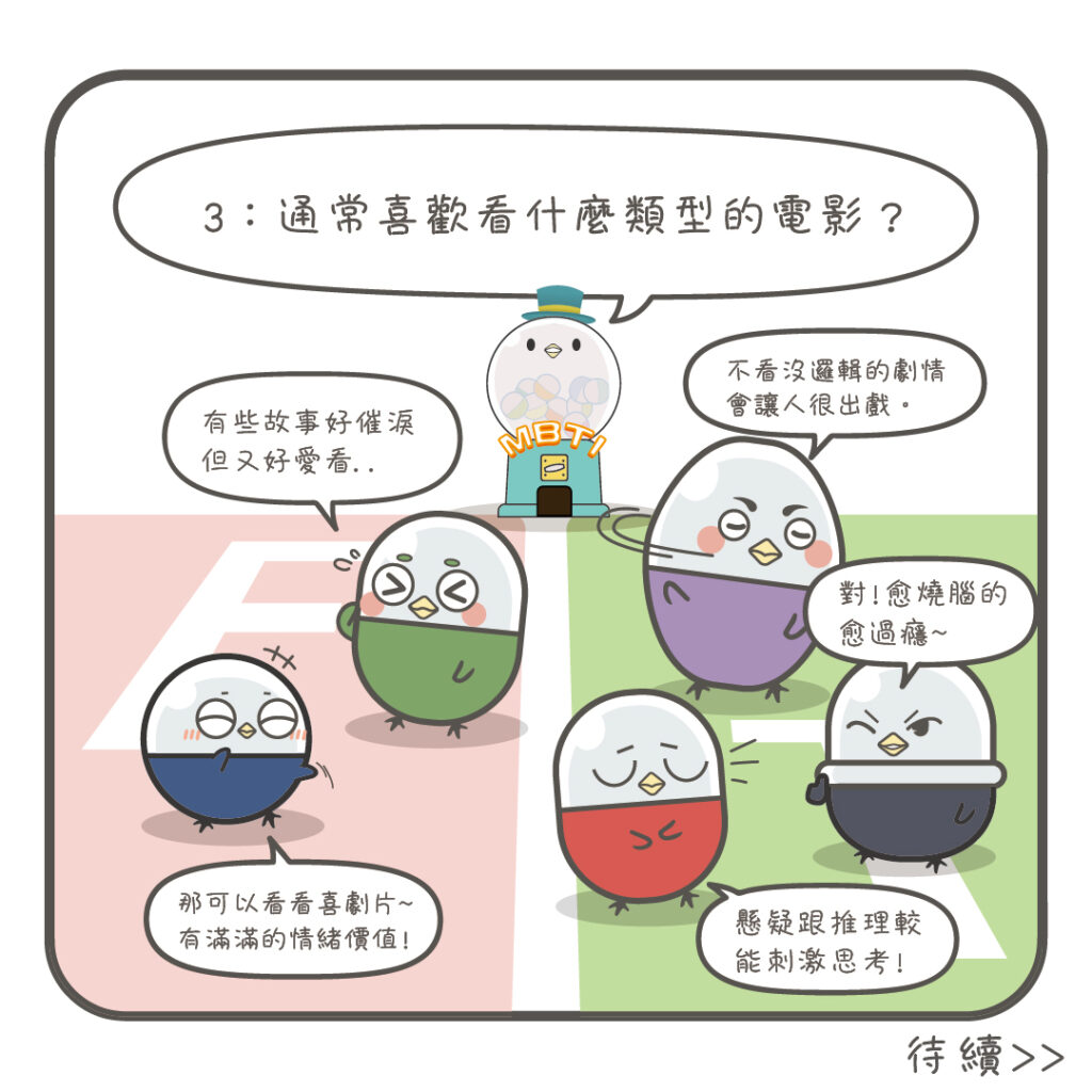ps. 以上內容為漫畫趣味性的主題創作,舉例與說明可能依情境和時空因人而異,並非唯一答案。更嚴謹的人格測試記得去參與官方正式的檢測喔!