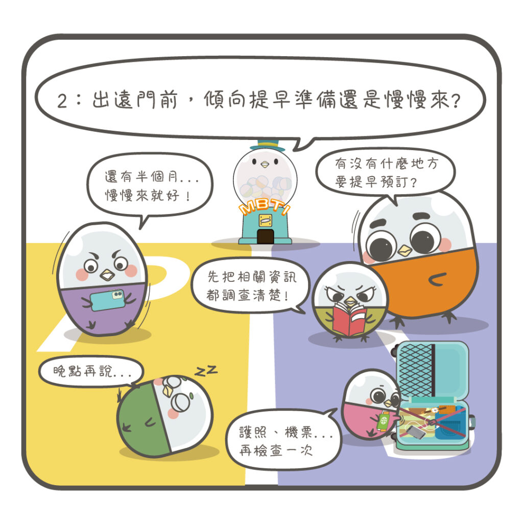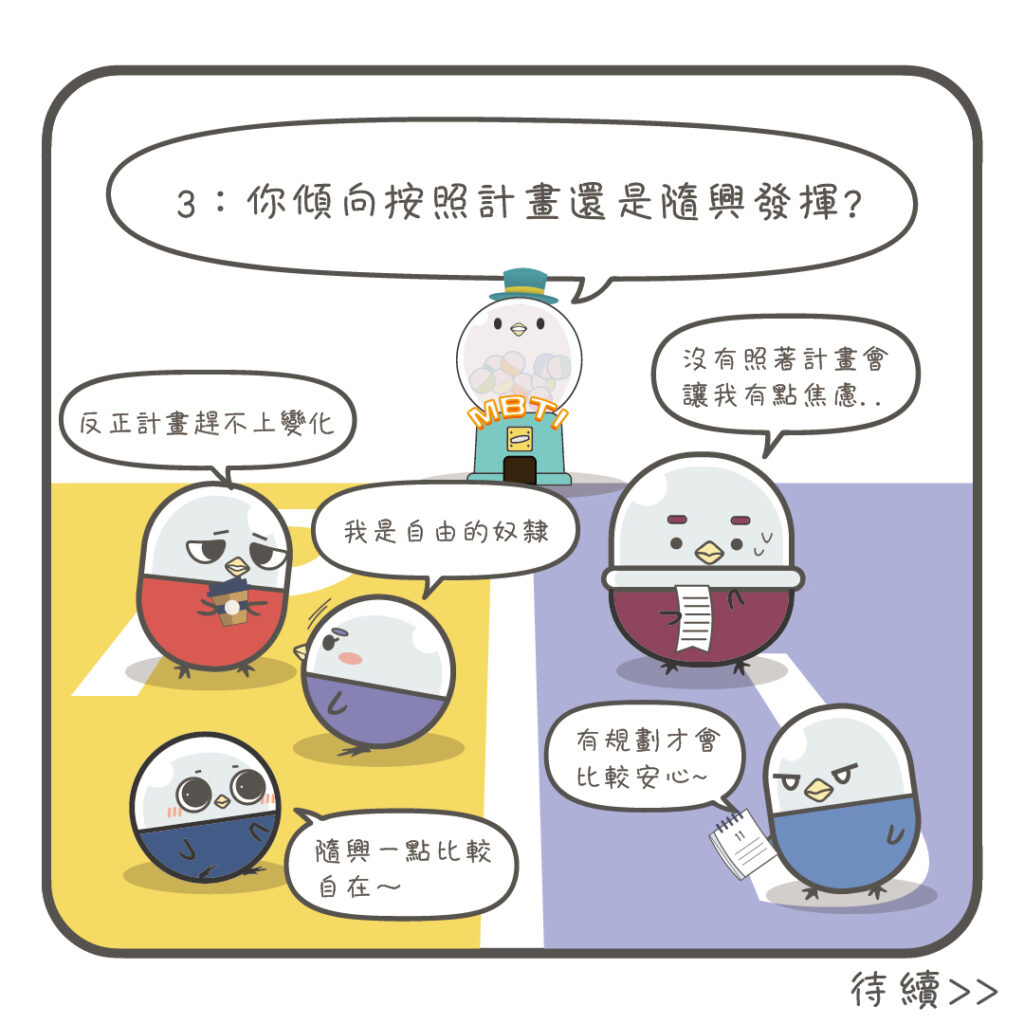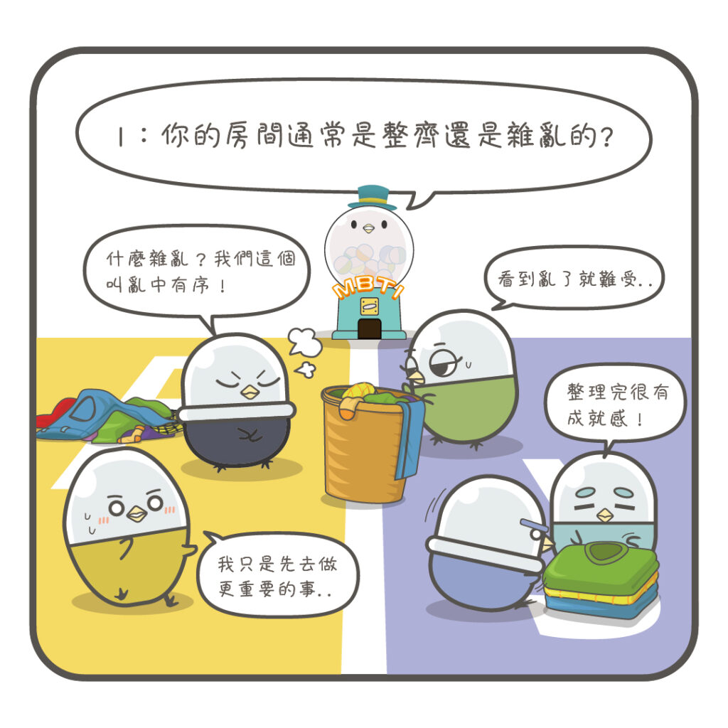 ps. 以上內容為漫畫趣味性的主題創作,舉例與說明可能依情境和時空因人而異,並非唯一答案。更嚴謹的人格測試記得去參與官方正式的檢測喔!