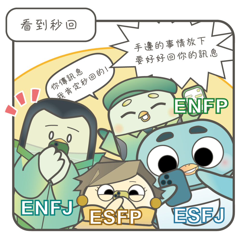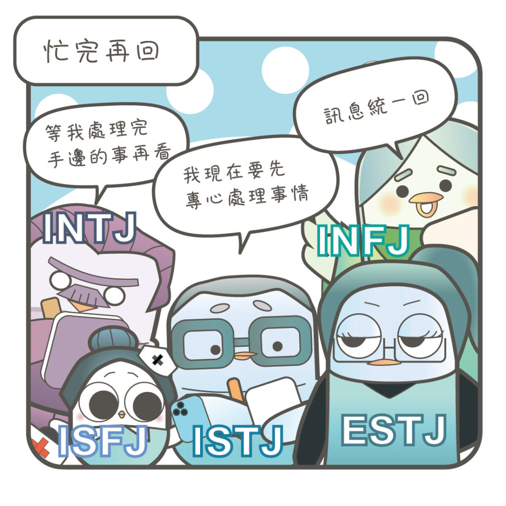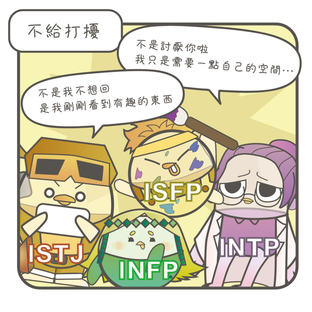 ps. 以上內容為漫畫趣味性的主題創作,舉例與說明可能依情境和時空因人而異,並非唯一答案。更嚴謹的人格測試記得去參與官方正式的檢測喔!