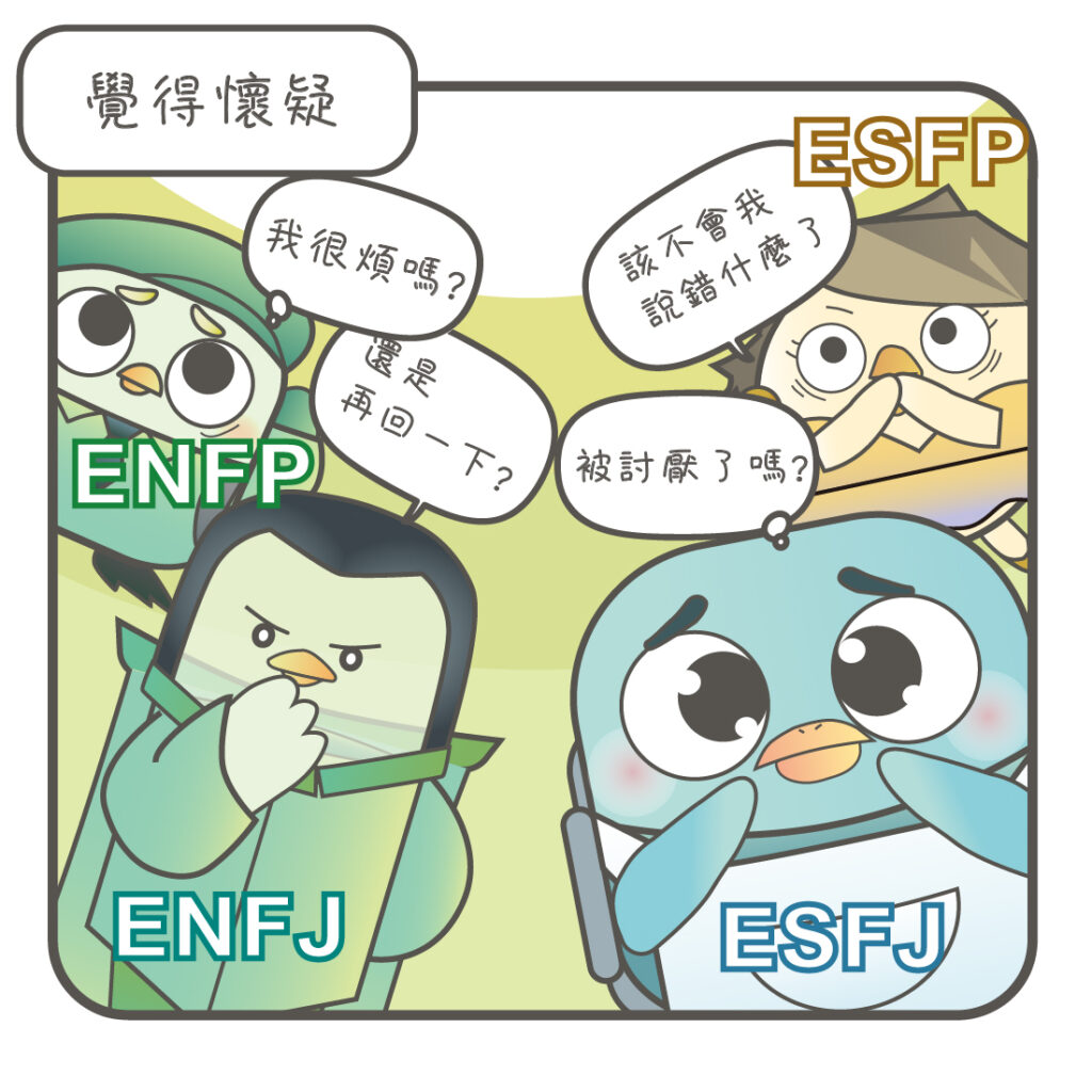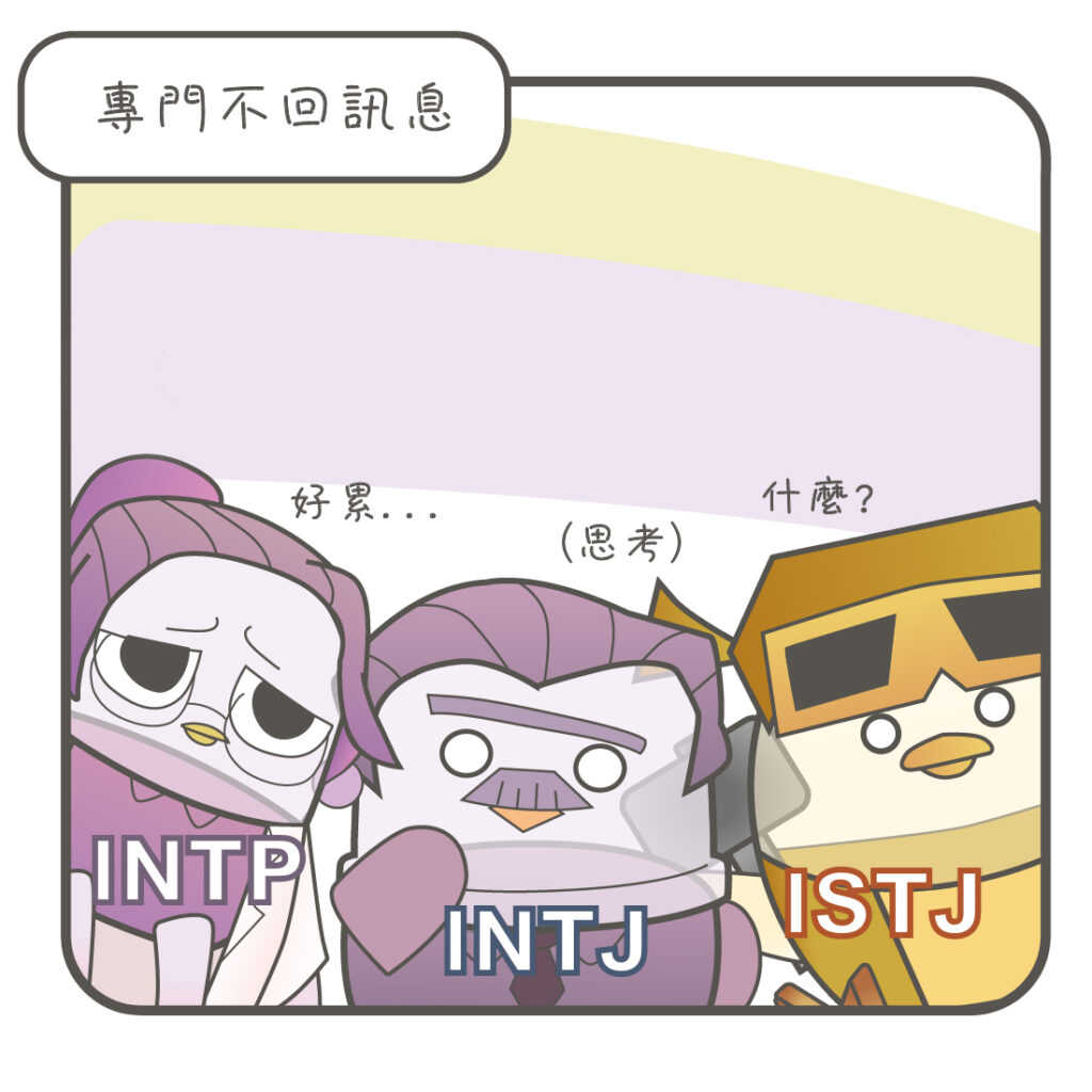 ps. 以上內容為漫畫趣味性的主題創作,舉例與說明可能依情境和時空因人而異,並非唯一答案。更嚴謹的人格測試記得去參與官方正式的檢測喔!